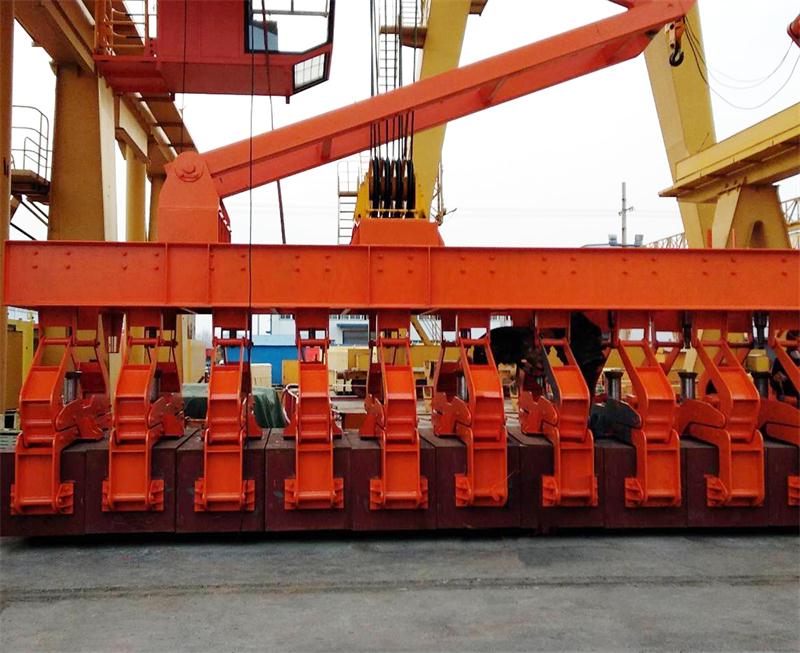 極炭塊堆垛起重機是炭素廠炭塊倉庫的專用轉運設備,該設備主要有橋架、大車運行機構、起升機構、導向裝置、夾鉗裝置、控制系統(tǒng)、電動葫蘆等部分組成。其用于陽極炭塊庫中抓運生、熟炭塊,及其它零星吊運。其自帶的夾具每次抓取19或21塊縱向排列的陽極炭塊進行往返堆垛或裝車,也可實現(xiàn)廢塊的取出及合格塊的插入,可堆積9層。