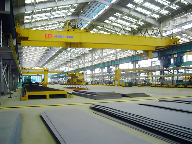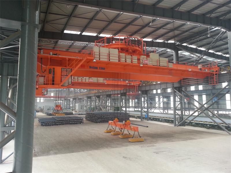 1.本起重機帶有可拆卸的電磁盤,特別適用于搬運具有導磁性的黑色金屬制品與材料如鋼錠、型鋼、生鐵塊等。主要用于鋼鐵企業扎線、成品,船廠鋼料堆場、下料車間等。